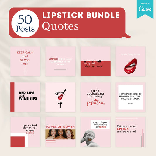 200 Lipstick Bundle Posts - Social Media Canva Templates